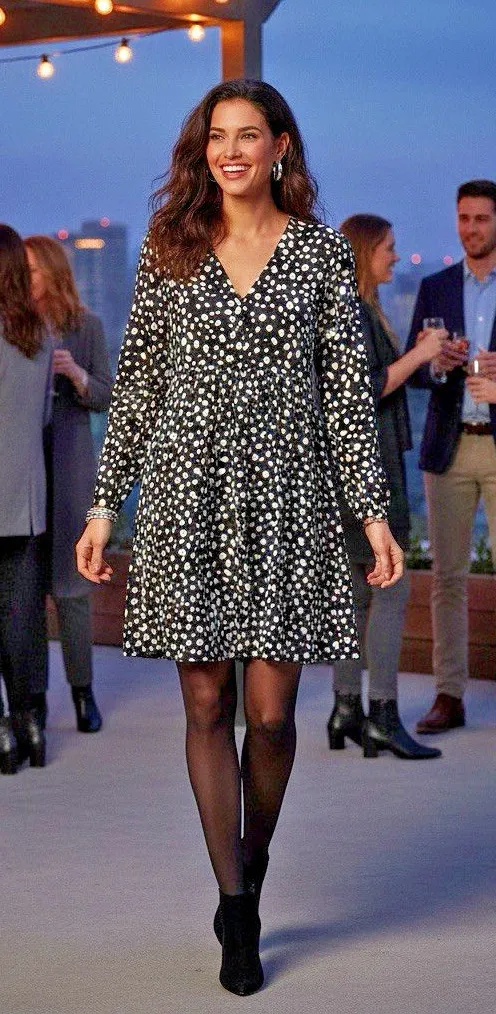 Description: Black and White Speckled Midi Dress