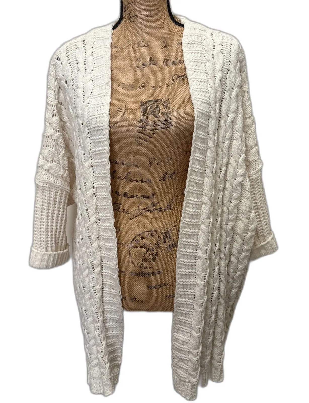 Umgee Chunky Knit Kimono Open Front Cardigan Short Sleeve Cream Boho Size S/M Gently used condition... Show more