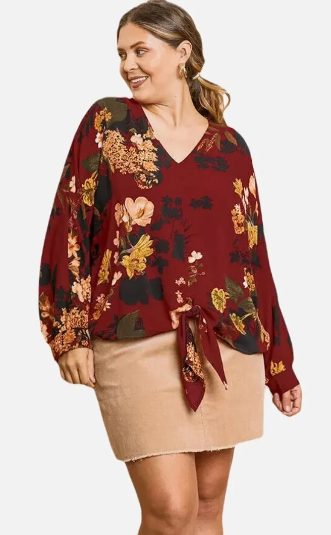 Charming floral blouse, perfect for adding a touch of elegance to any outfit. This burgundy red top... Show more