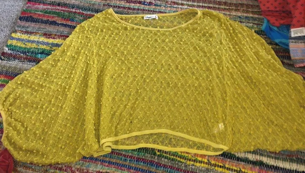 See through Umgee Top. Cute with a bralette or body suit underneath. Perfect for fall. Very comforta... Show more