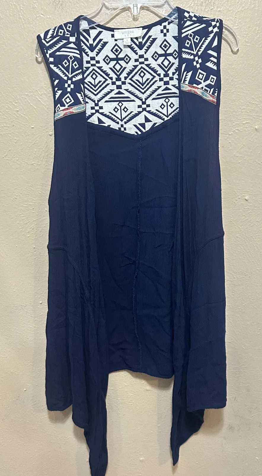 Type: Vest Outer Shell Material: Cotton Blend Style: Kimono Department: Women Lining Material: Cotton Theme: Bohemian, Aztec Fabric Type: Crepe Features: Lightweight, Open Accents: Beaded Pattern: Geometric Season: Summer, Spring Closure: Tie Occasion: Casual, Travel Keywords: Umgee, Vest, Sleeveless Top, Cover Up, Aztec Print, Tribal Print, Bohemian, Boho, Festival, Summer, Casual, Small, Womens, Blue, White No measurements will be provided!