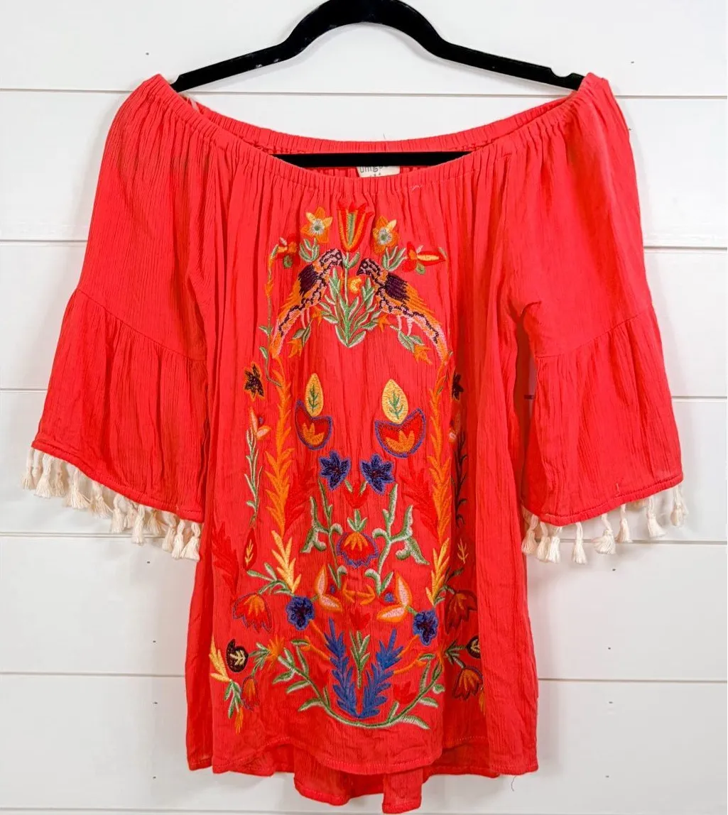 Brand: Umgee Department: Women's Size: Small Color: Red Type: Blouse Neckline: Off The Shoulder Sl... Show more