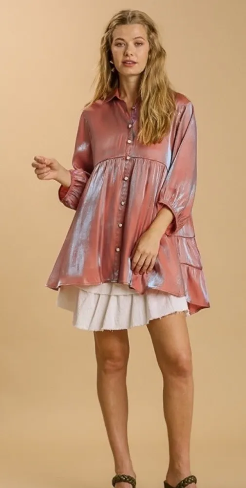 The Umgee Women's Satin Tiered Orange Clay Tunic Dress/Top in size M is a stylish and versatile piec... Show more