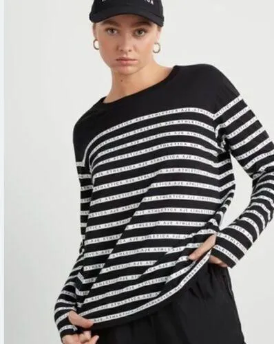 Old Navy white and black striped long sleeve sweater women size large 60% cotton 40% acrylic sleeve... Show more
