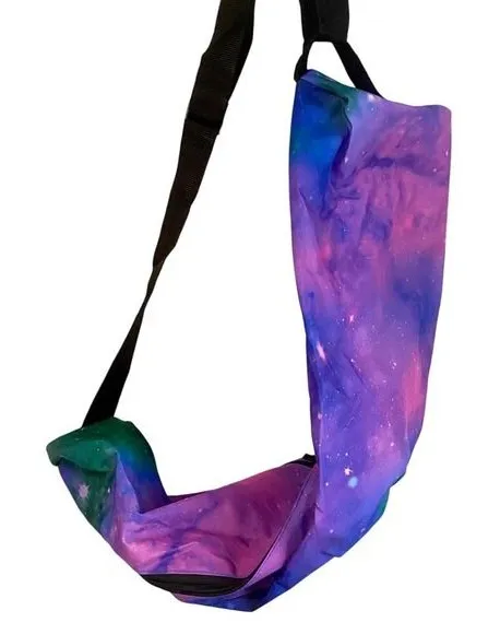 A foldable sling bag featuring a vibrant galaxy print with purple blue and green hues. This versatil... Show more