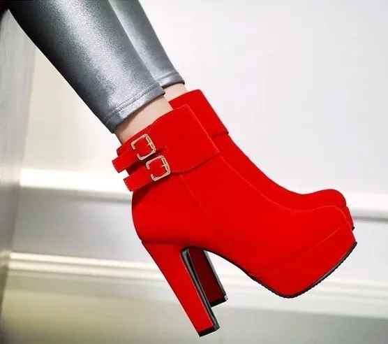 Unbranded Women 33 (7) High Block Heels Buckle Faux Suede‎ Stiletto Shoes Party Red - $15 - From Desiree