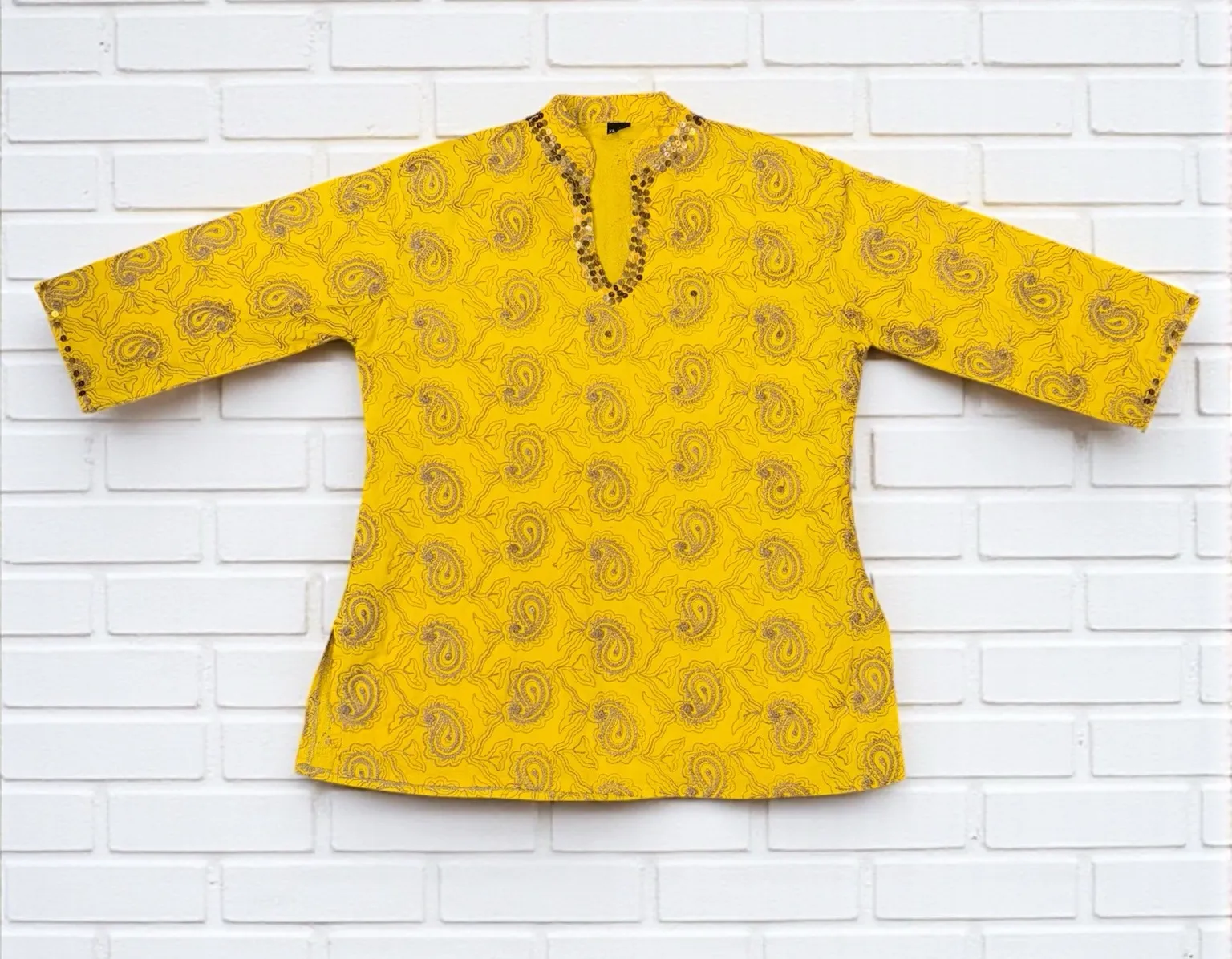 • Good Used Condition • Unbranded Women's XL Yellow Paisley Casual Relaxed Fit Ethnic Kurti Top Blo... Show more