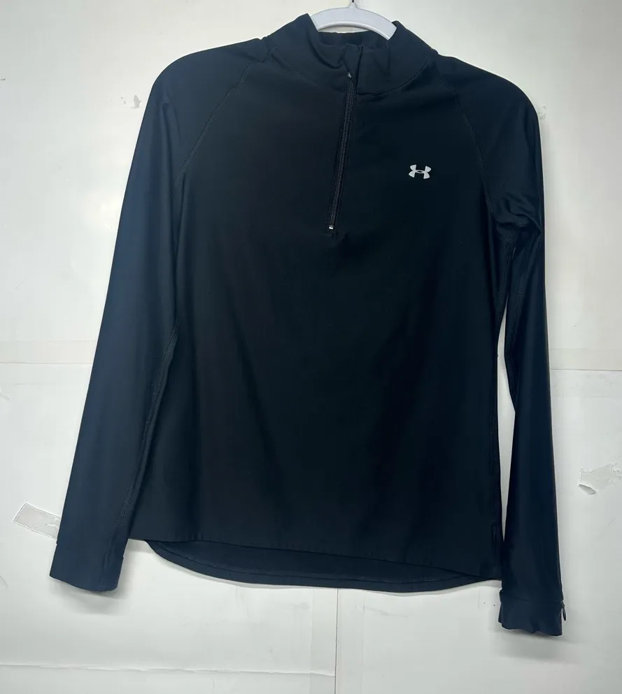 Sleek black top with quarter zip. Long sleeves and minimalist design. it does have imperfections on... Show more