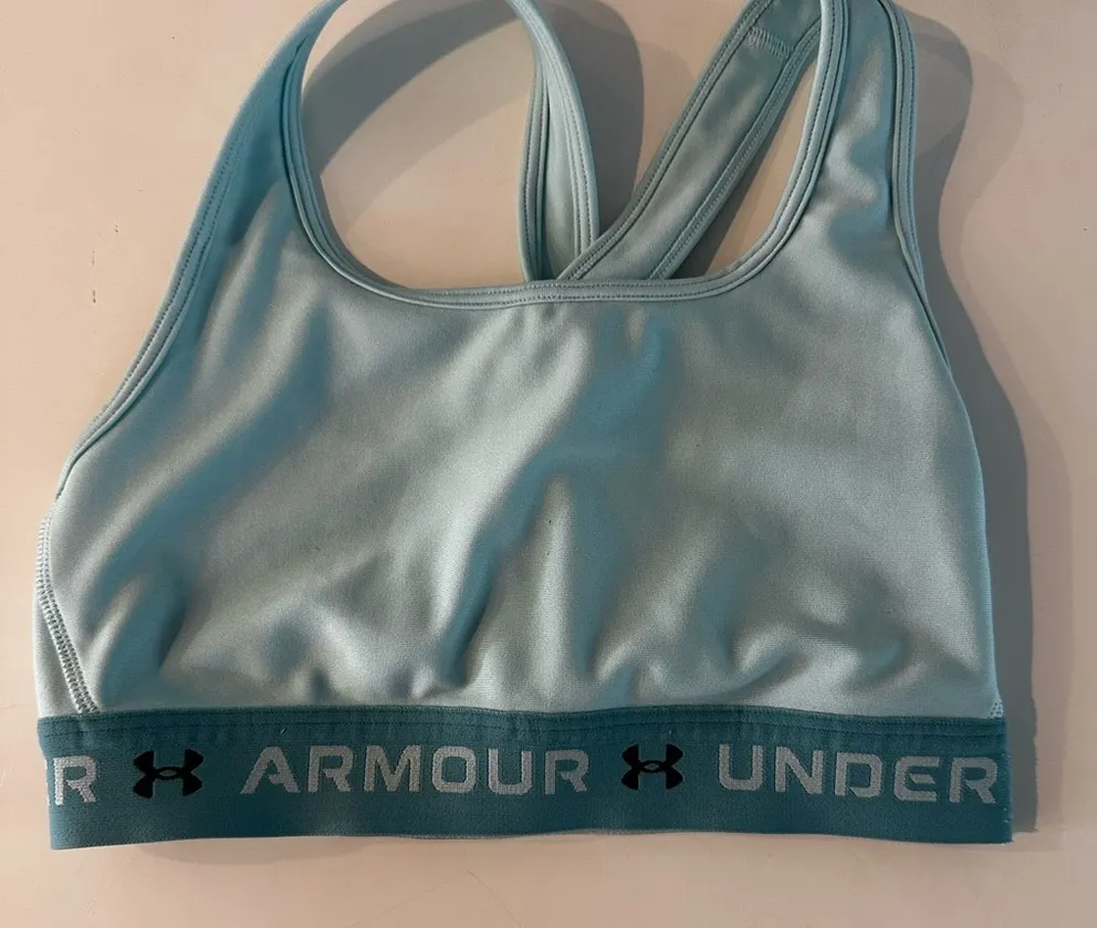 Stay comfortable and supported with the Under Armour Blue Sports Bra, crafted from moisture-wicking... Show more
