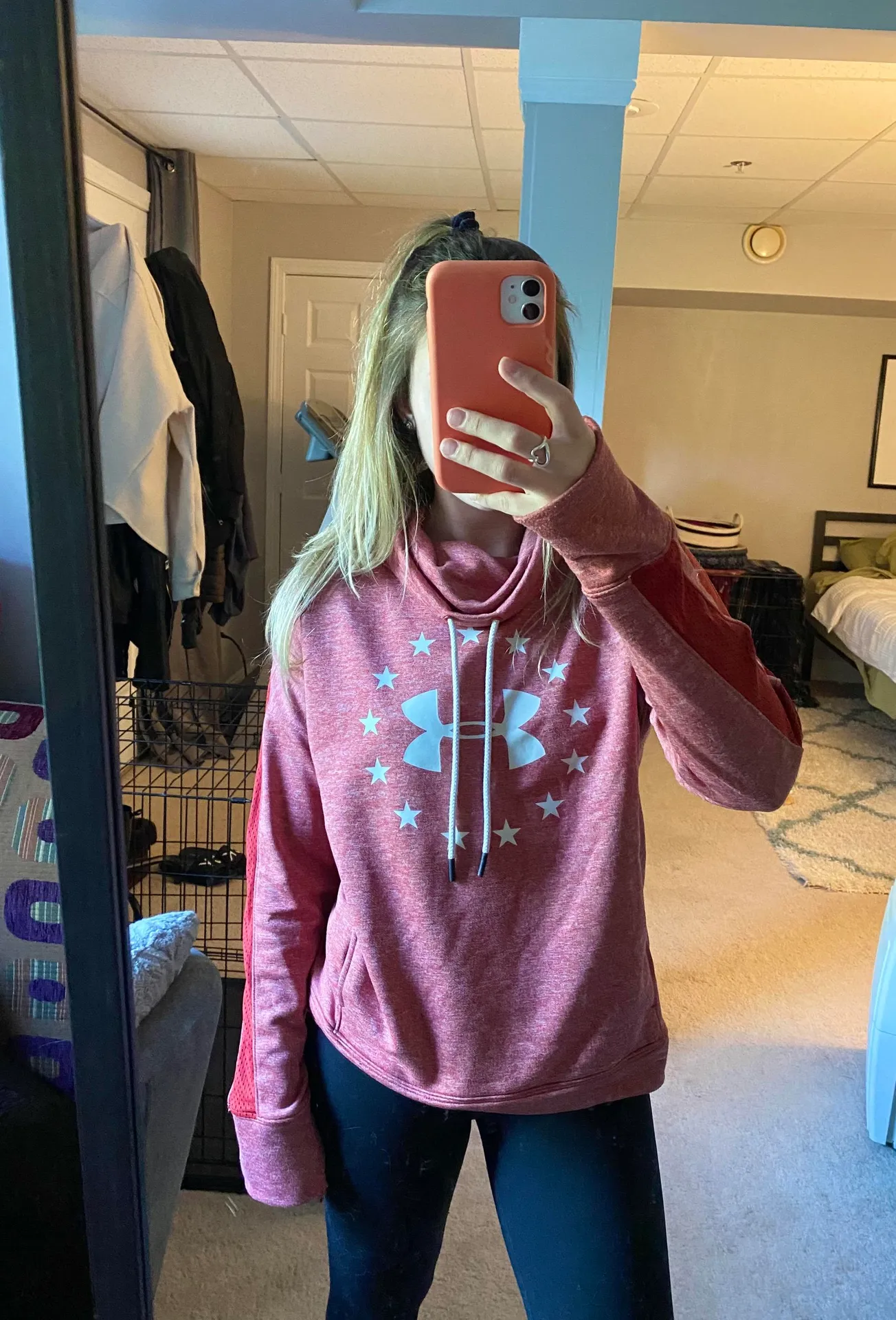 NWOT red cowl neck Under Armour sweatshirt. Worn only once to try on. Small size, loose fitting, thu... Show more