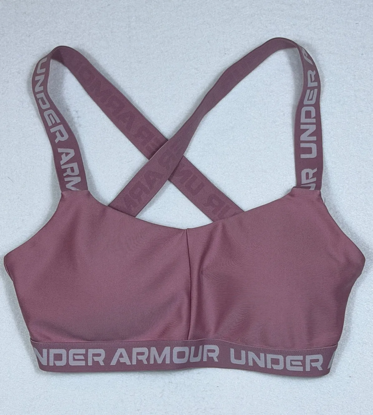 Elevate your workout with this stylish Under Armour sports bra. Designed for ultimate comfort and support, the crisscross straps offer a secure fit that moves with you, while the signature branded band ensures a chic look. Perfect for gym sessions, running, or yoga.