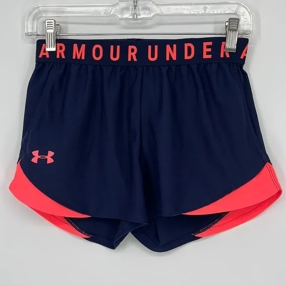 Under Armour Heatgear Running Shorts Navy Blue & Neon Pink Size XS Elastic Waistband Pockets... Show more