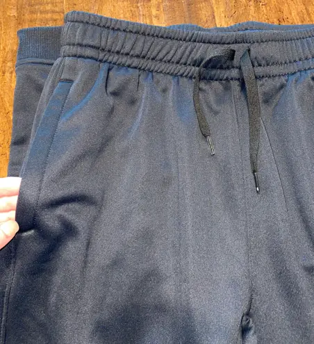 Black polyester Under Armour joggers. Pretty sure they’re men’s. Can send you measurements if you dm... Show more