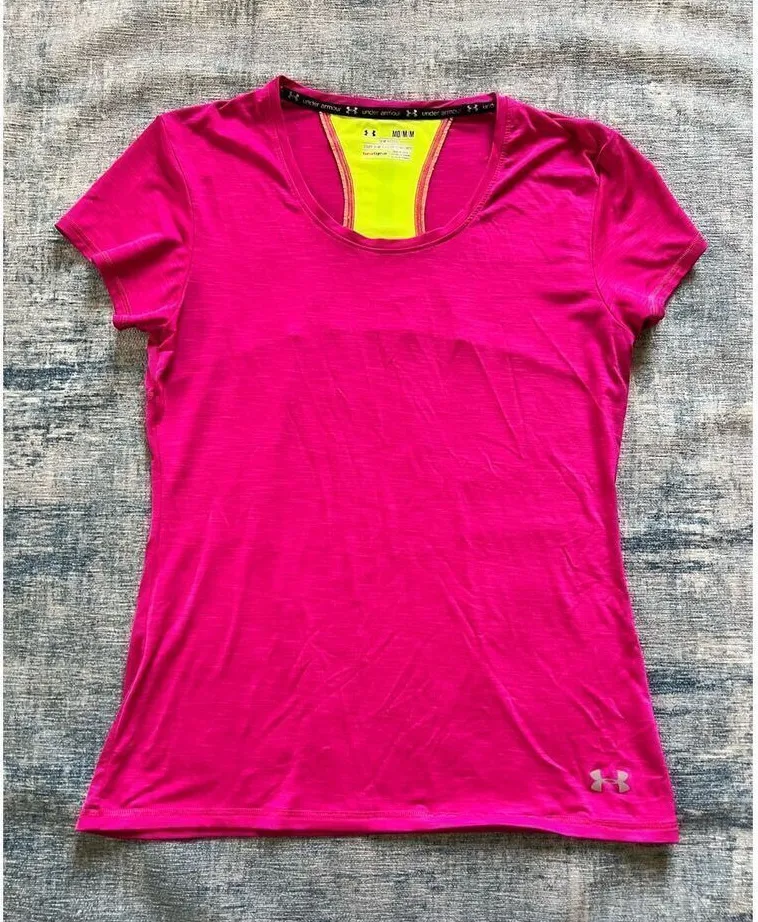 Under Armour Pink Neon Yellow Reflective Run Heatgear Short Sleeve Tee M Bright fuchsia pink short... Show more