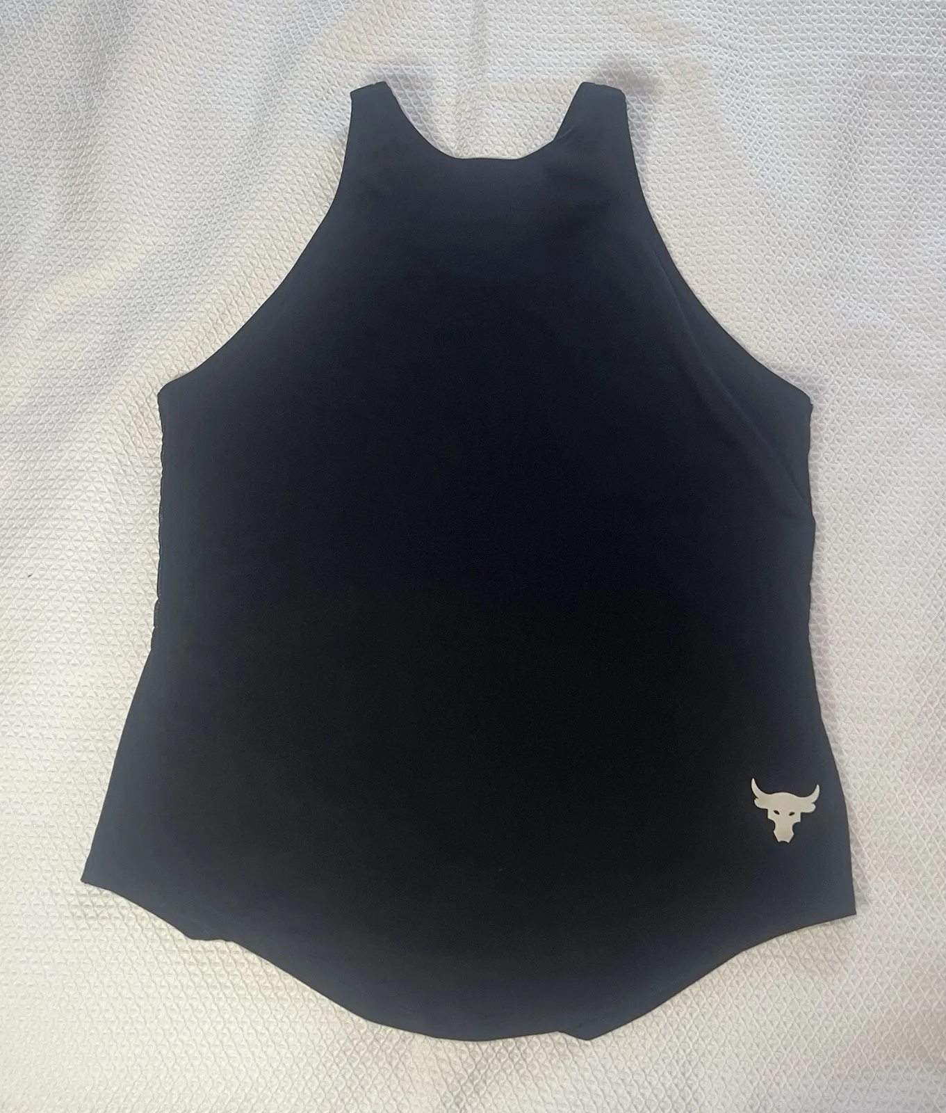The product is a women's XS Under Armour tank top with a racerback design, featuring a solid black c... Show more