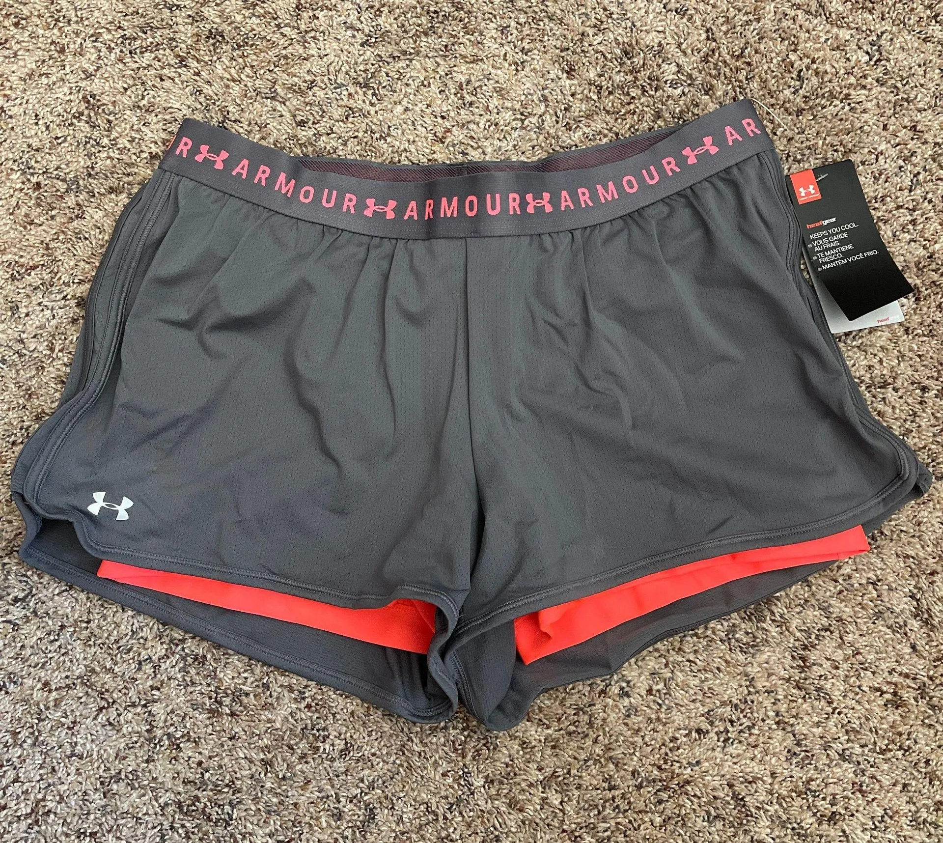 NWT under armour gray shorts with built in neon pink spandex! Size Large