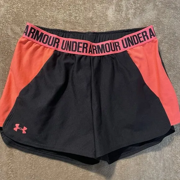 Under Armour Shorts Womens Medium Loose Heat Gear Spellout Black Pockets Neon - $18 - From T
