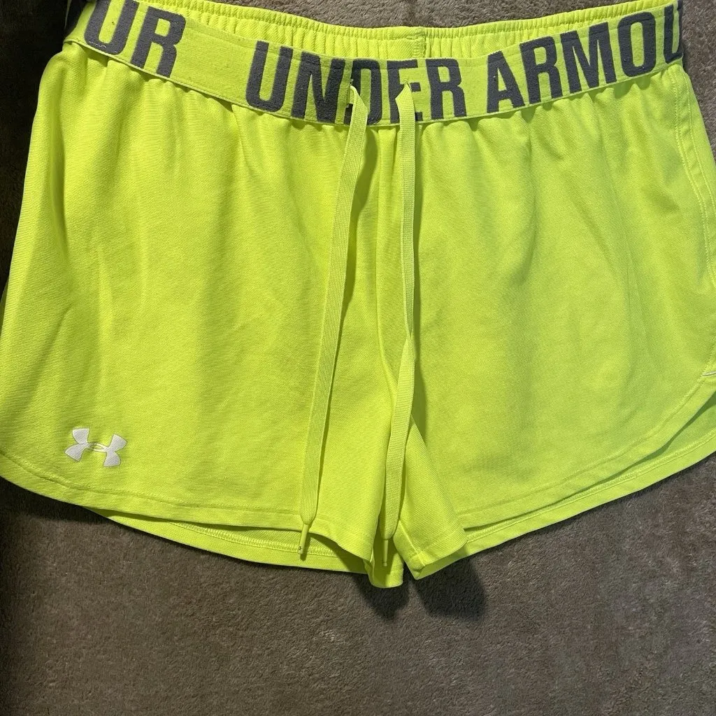 Under Armour Shorts Womens Medium Semi Fitted Neon Yellow Heat Gear Spell Out - $22 - From T