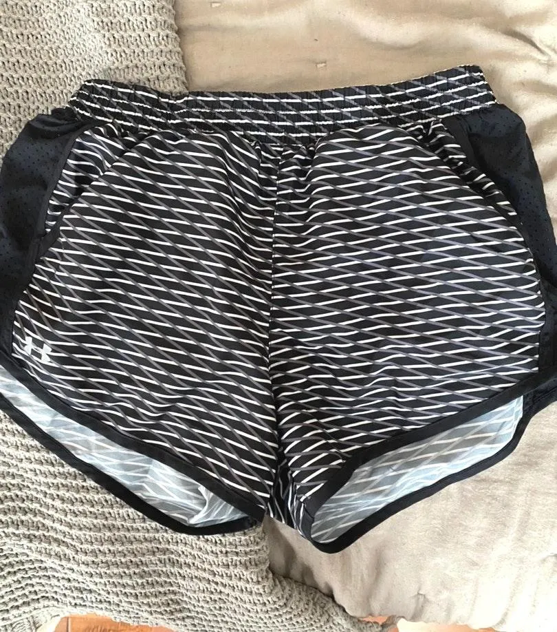 super cool black and white patterned shorts, tag doesn’t include size but I’m pretty positive they’r... Show more