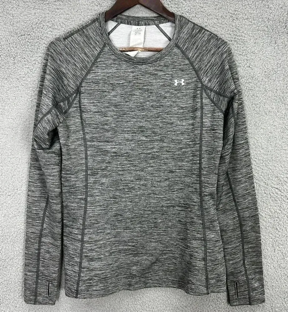 Under armour top womens large gray cozy crew neck thumbhole athletic running used condition with no... Show more