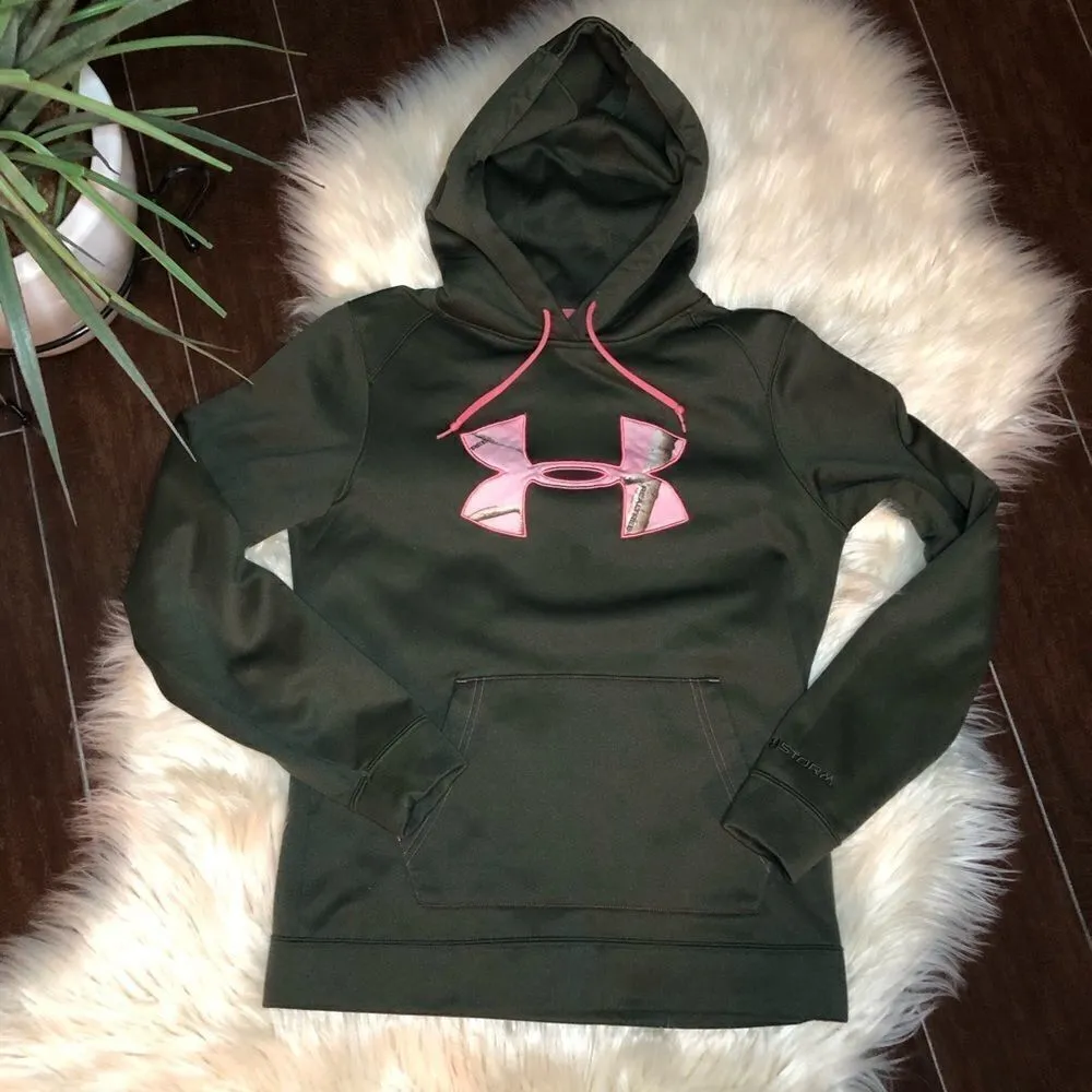 Under Armour Olive green/ pink Real Tree Semi fitted Cold gear Storm hoodie Size small Kangaroo... Show more