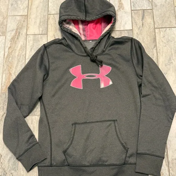 Under Armour women's medium gray with pink/purple STORM (water-resistant) pullover sweatshirt. Thick... Show more