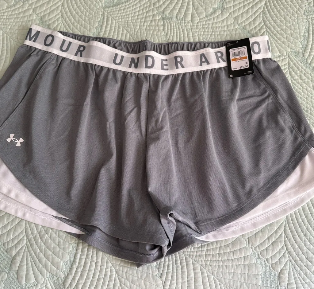 Sleek gray shorts with white trim. Ideal for workouts, sports and casual outings. Features comfortab... Show more