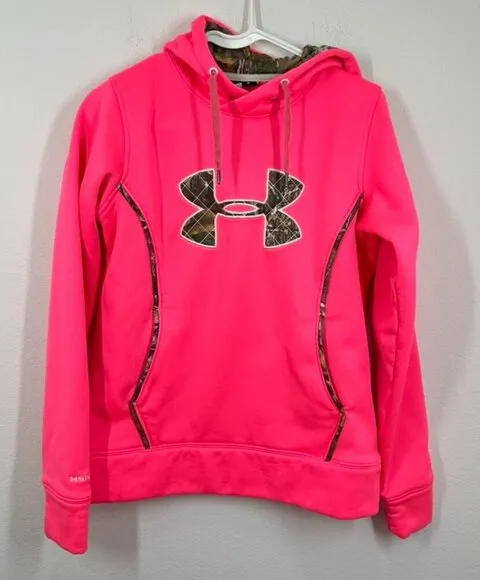 Under Armour Women's Size Small Hooded Sweatshirt Neon Pink Real Tree Camo Logo Pre-Owned in Excelle... Show more