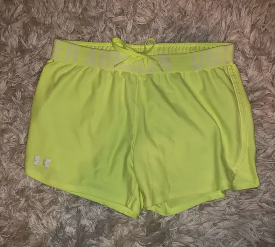 BRIGHT yellow UA workout shorts!! only worn a couple of times, great condition! more of a looser fit... Show more