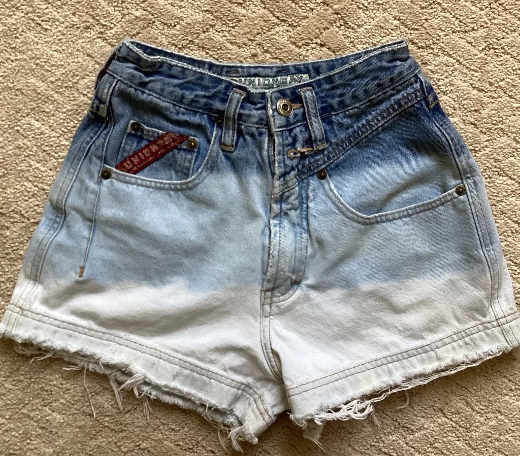 Embrace the 90s retro hippie vibe with these vintage Union Bay ombre shorts in size 3. The dark blue... Show more