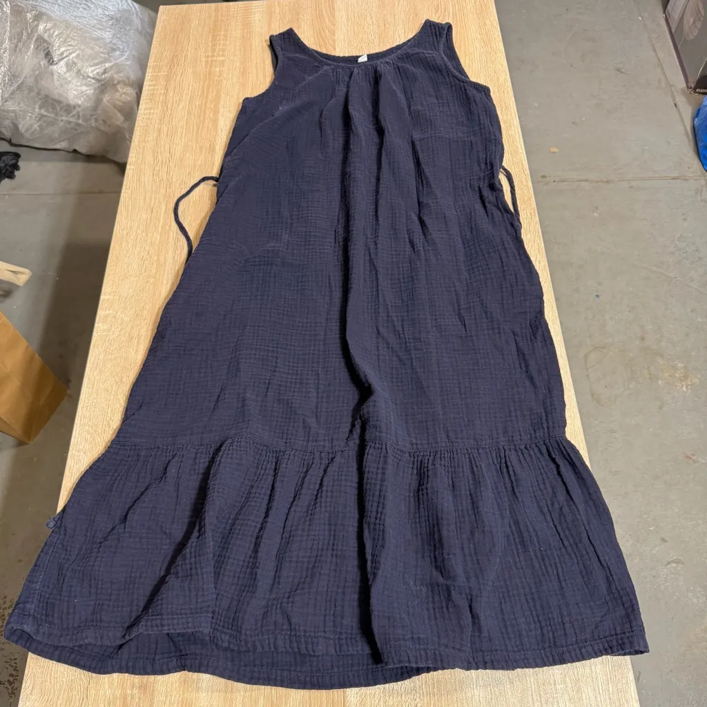 Chic navy midi dress with a sleeveless design. Perfect for casual outings. Comfortable and stylish.... Show more