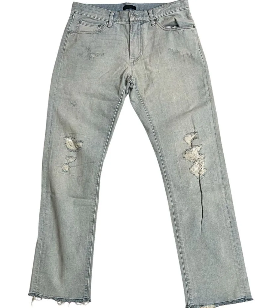 Uniqlo Sz 31 Womens Slim Straight Light Blue Denim Jeans Low Rise Raw Hem pre owned Distressed Bi... Show more