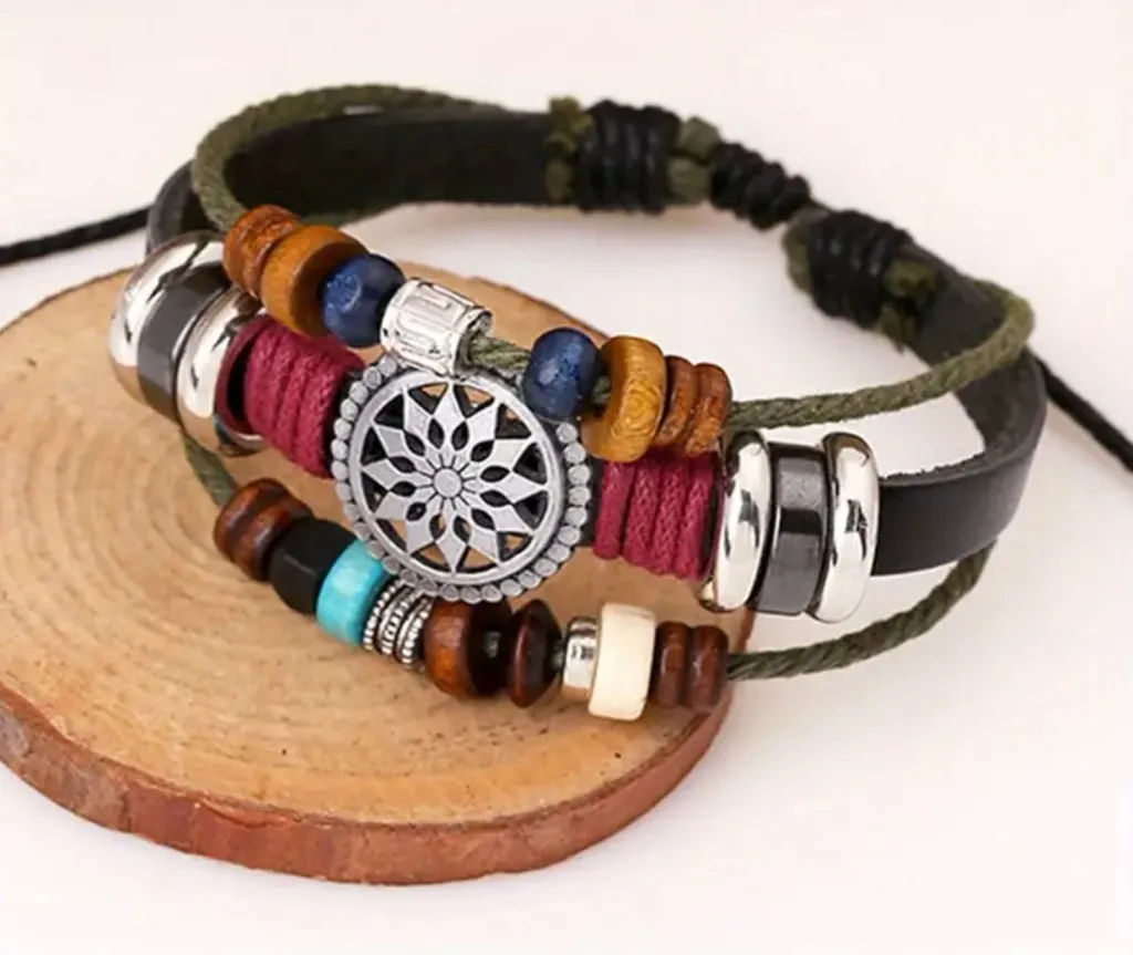 Unique Wooden Beads Wrist Cuff‎ Link Braided Leather Couple Decorative Bracelet - $16 New With Tags - From Mon