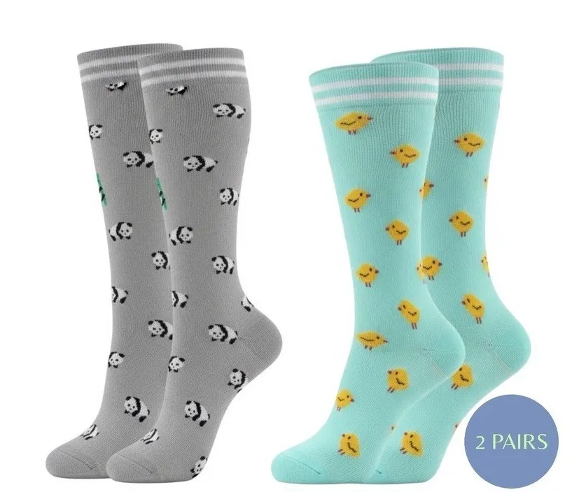 Unisex 20-30 mmHg Gradient Compression Socks LXL Knee High Medical Animal All Over Print 2 Pack NEW.... Show more