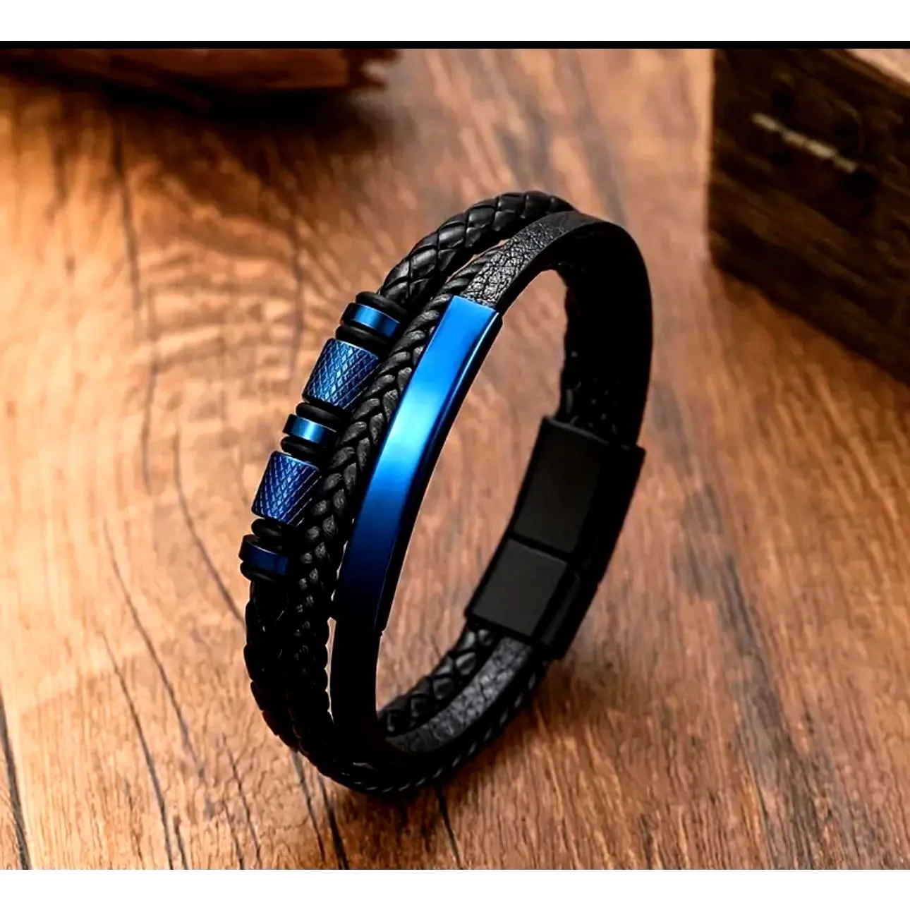 Unisex Handwoven Faux Leather Bracelet with SS Magnetic Clasp Blue Black - $22 New With Tags - From Sassy