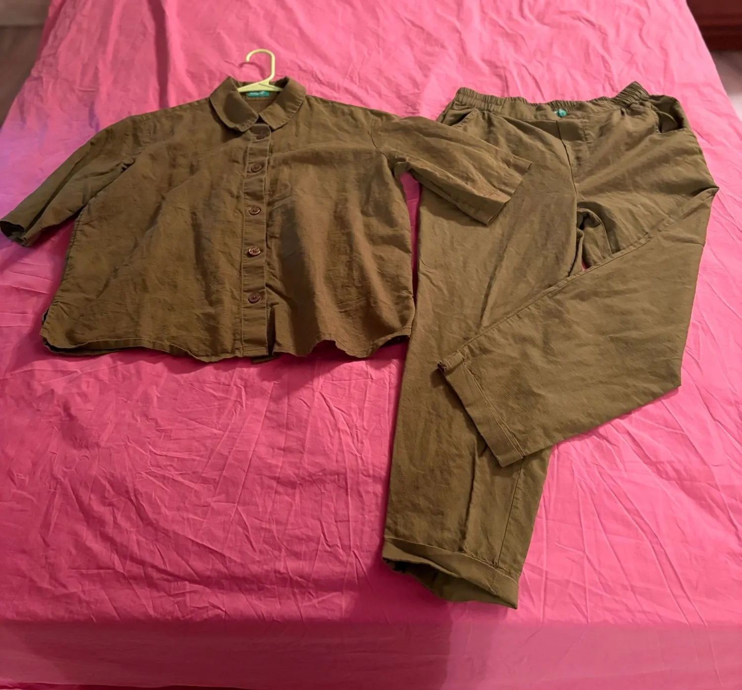 EUC!!! Safari suit set by Benetton. Olive green button down shirt Short sleeves Elastic waist pants... Show more