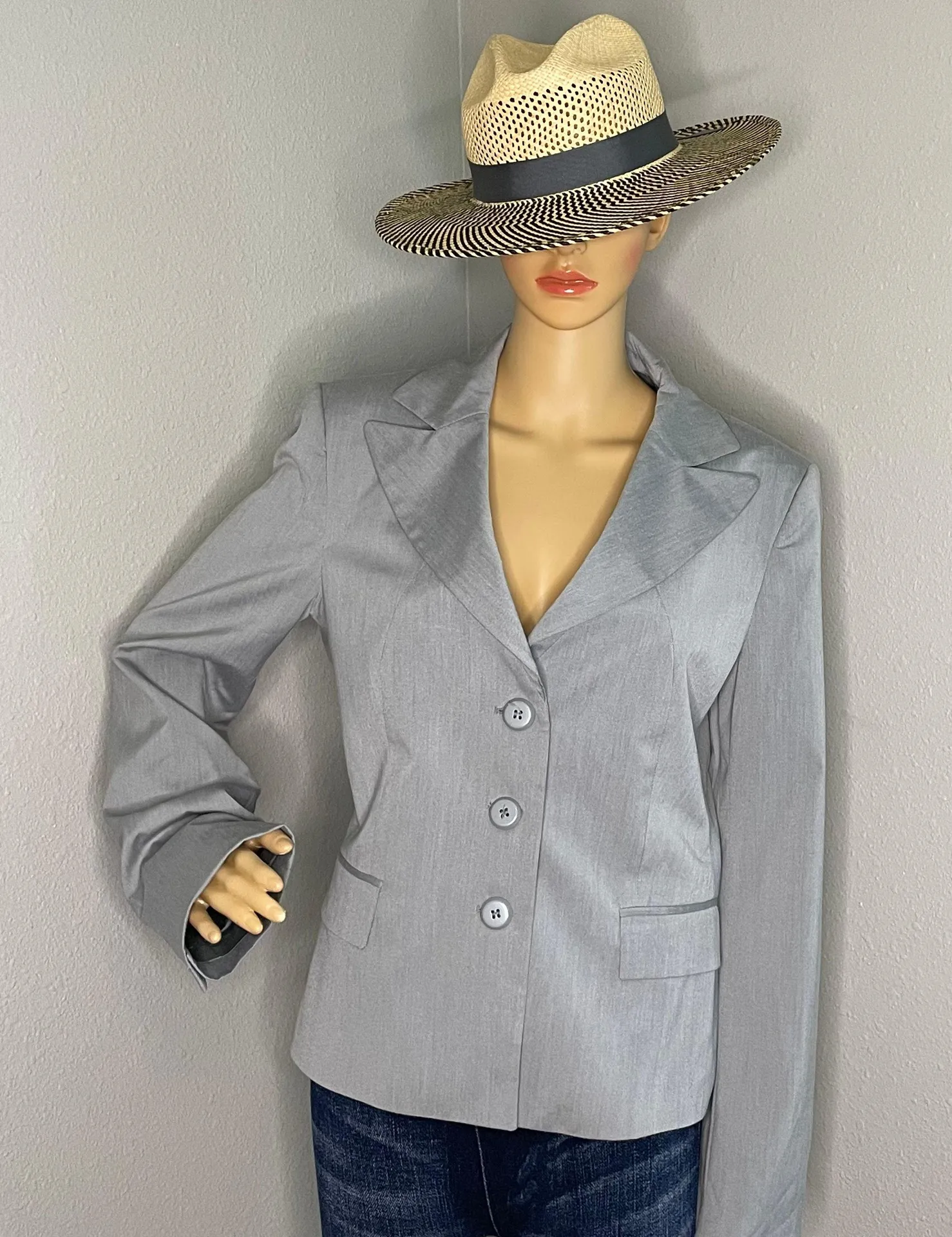 Stile Benetton Gray 3 Button Blazer Set In Shoulder Pads Size 48 Italy / 12 US Great used conditio... Show more