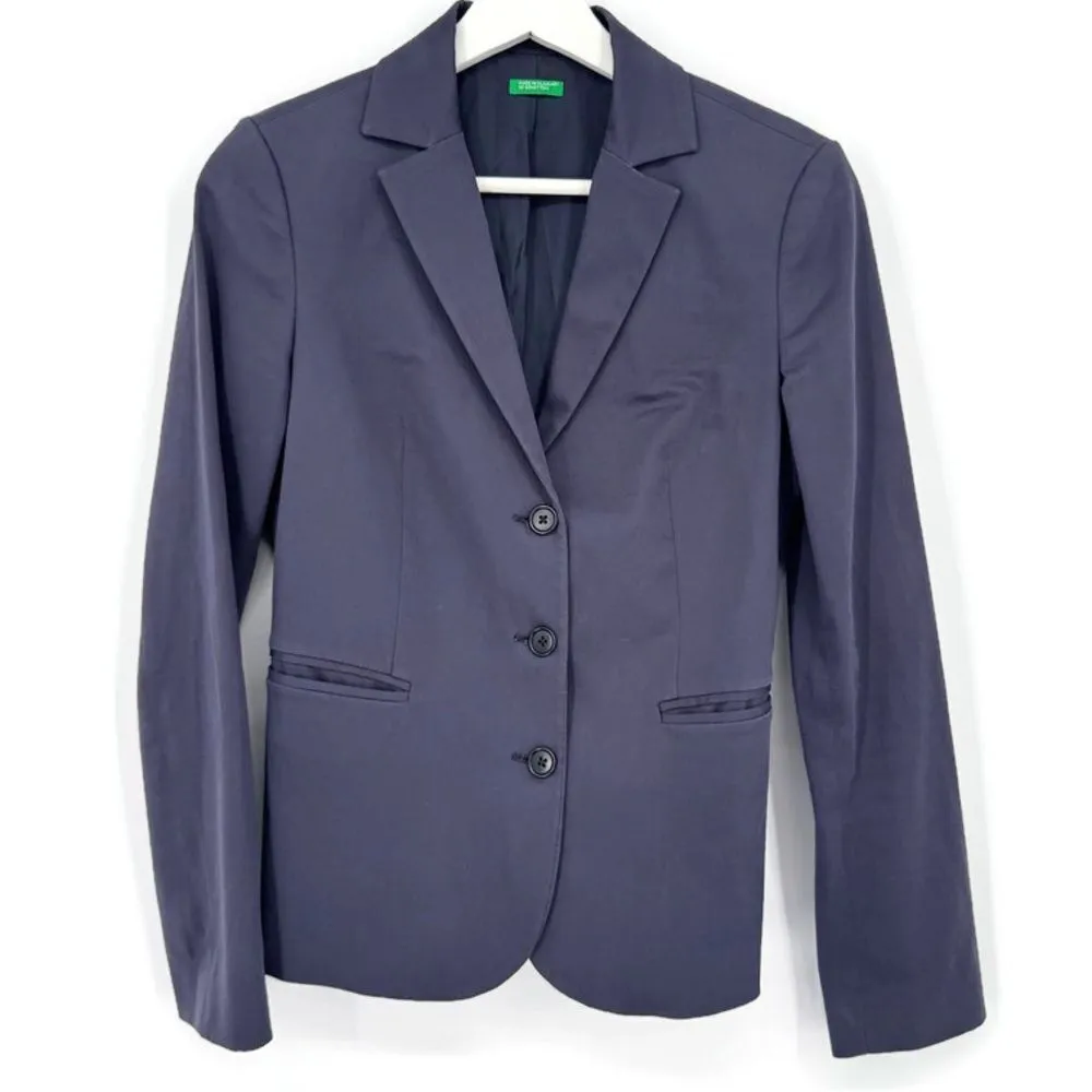 Vintage United Colors of Benetton Three Button Navy Blazer - Size: EU 38 US 8 - Condition: Great preowned condition - Color: Navy Approximate Flat Lay Measurements - Underarm to underarm: 16.5” - Length: 23” SKU: 2377 Tags: Career, job, office, professional, business, modest, classic, work, preppy, academic, academia, polished, classicore, neutral, workwear, interview, old world aesthetic, old money aesthetic, old money chic, quiet luxury, stealth wealth, power suit, businesscore, clean girl, school boy