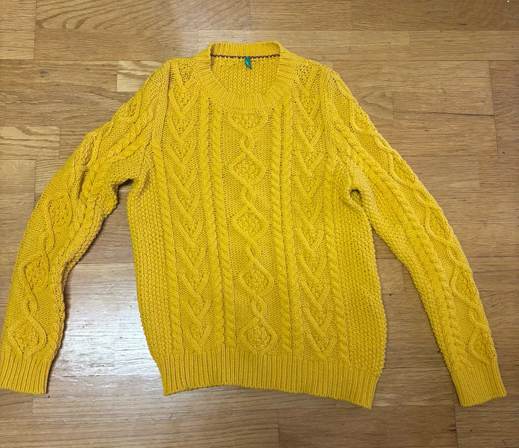 United Colors of Benetton Yellow Fisherman Cable Knit Preppy Crewneck Sweater M Size M - $35 - From Rachel