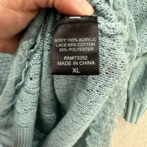 United States sweaters XL tunic blue pullover lace trim fisherman cable knit feminine coquette boho... Show more