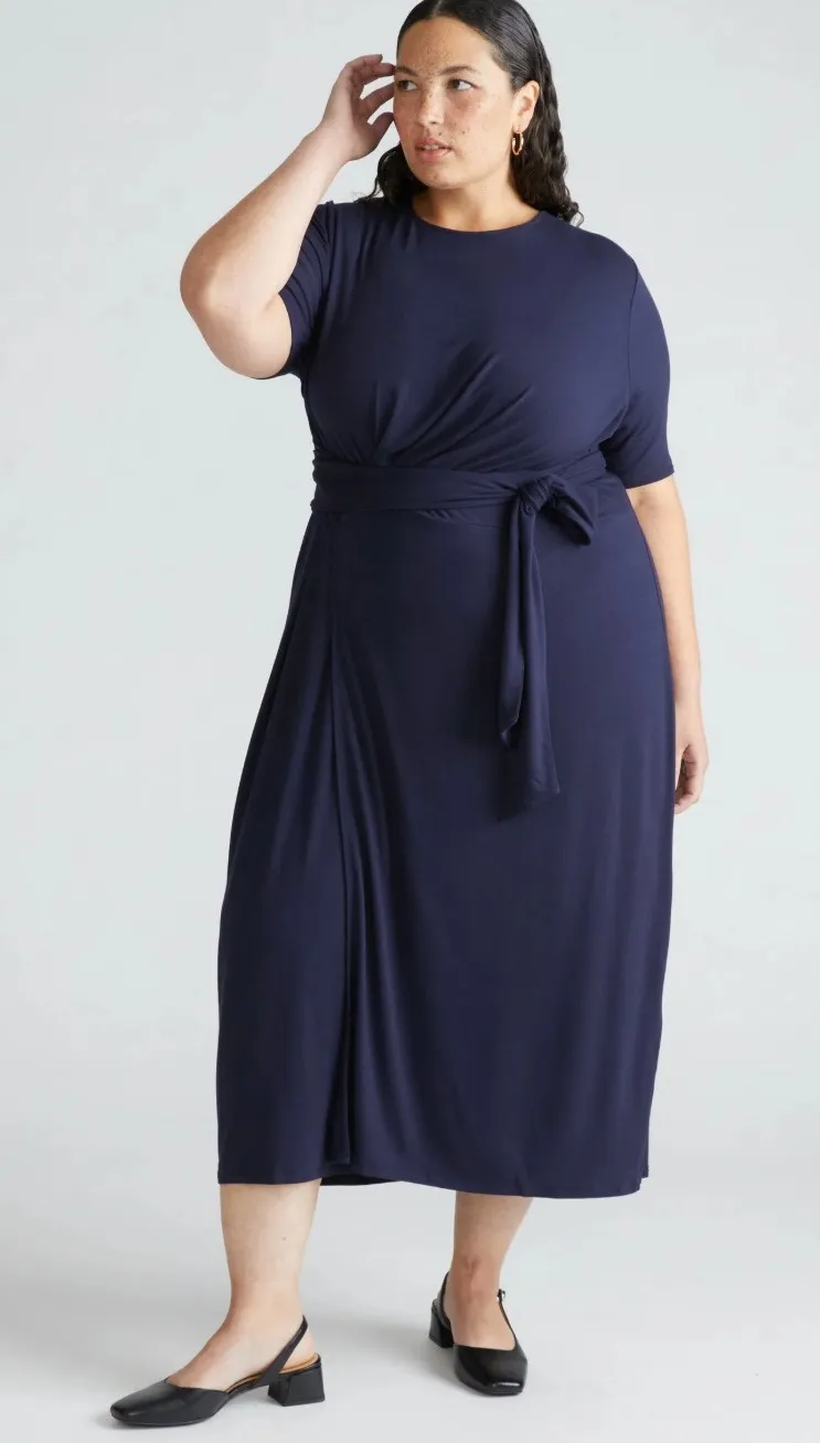 -Rounded Neckline -Short Sleeves -Faux Wrap Style -Midi Length -Rayon/Elastane -Machine Wash Approximate Measurements- Pit to Pit- 25" Waist Across- 22" Shoulder to Hem- 48" This item is in good preowned condition with no flaws. Open to reasonable offers