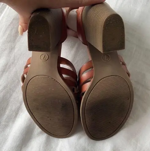 Faux leather block heel shoes. Buckle ankle strap