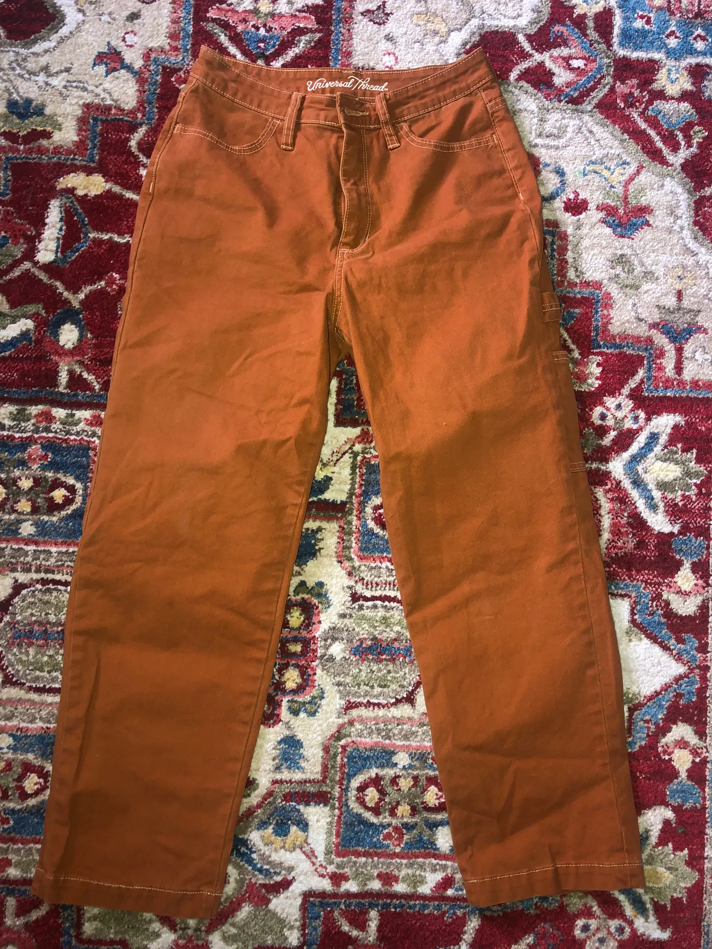 Super trendy, only worn once. The color is like a burnt orange or rust color the side has pockets an... Show more