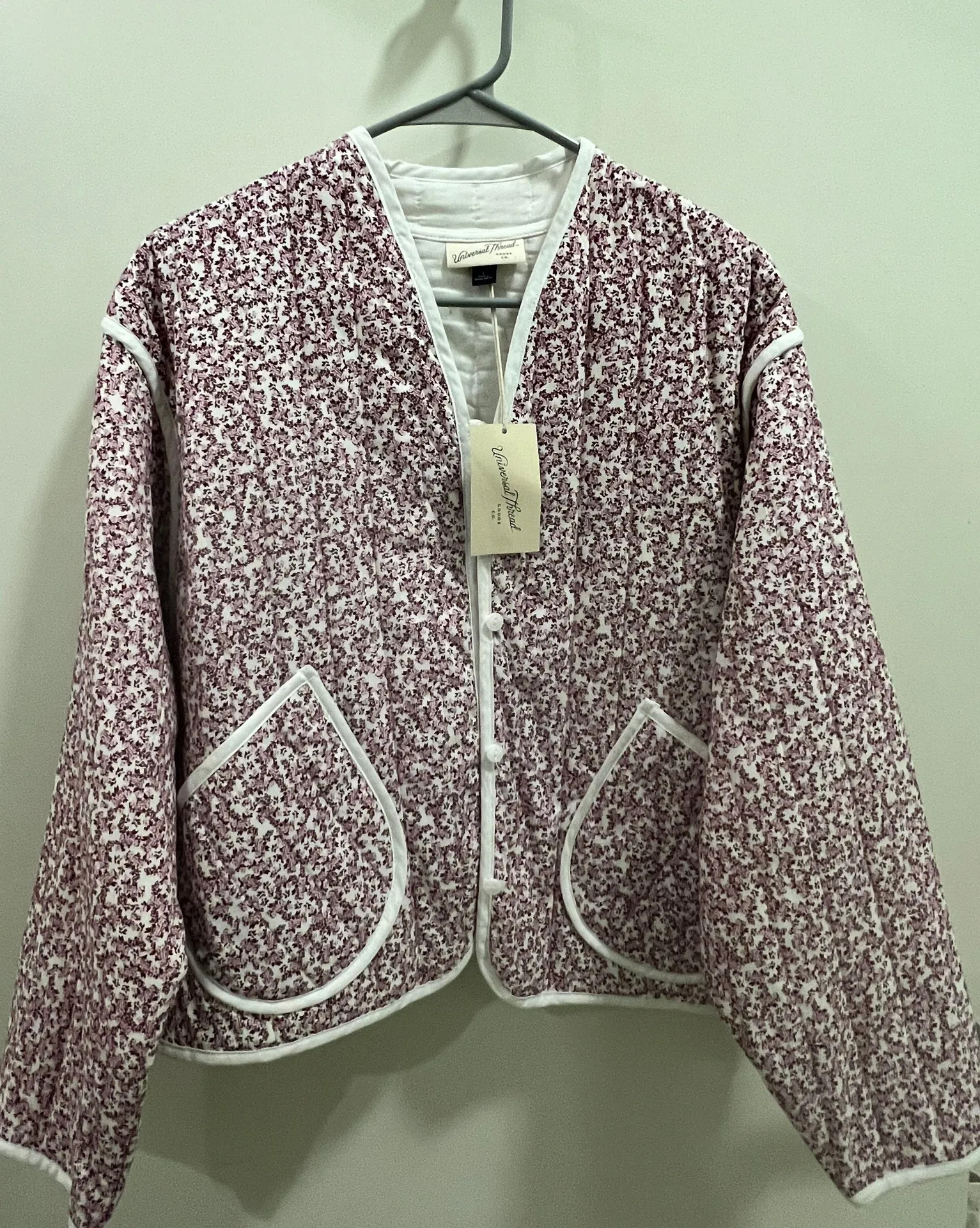 Pink floral thing quilt bomber jacket size large