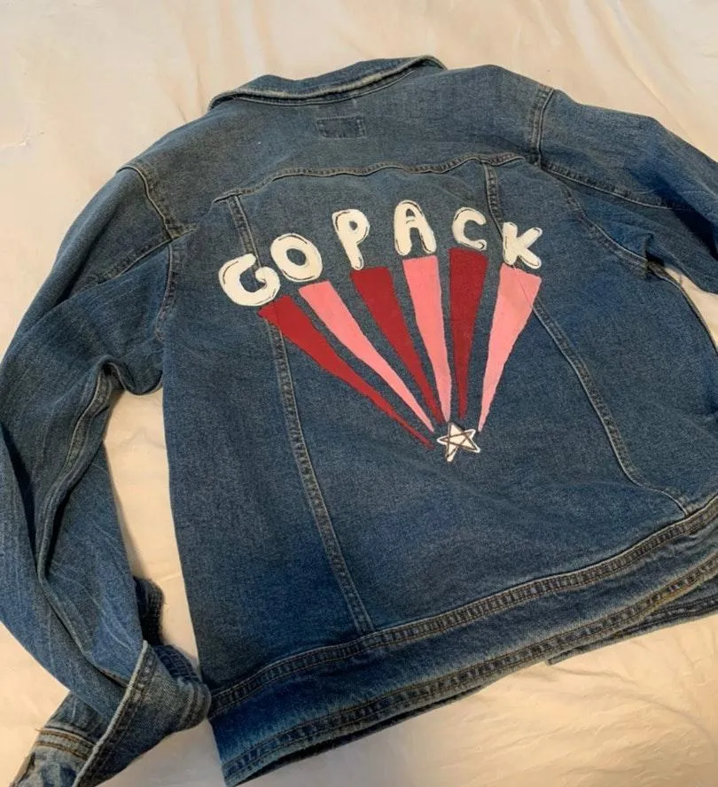 Super cute hand painted jean jacket! Got for NC State football games but transferred so I no longer... Show more