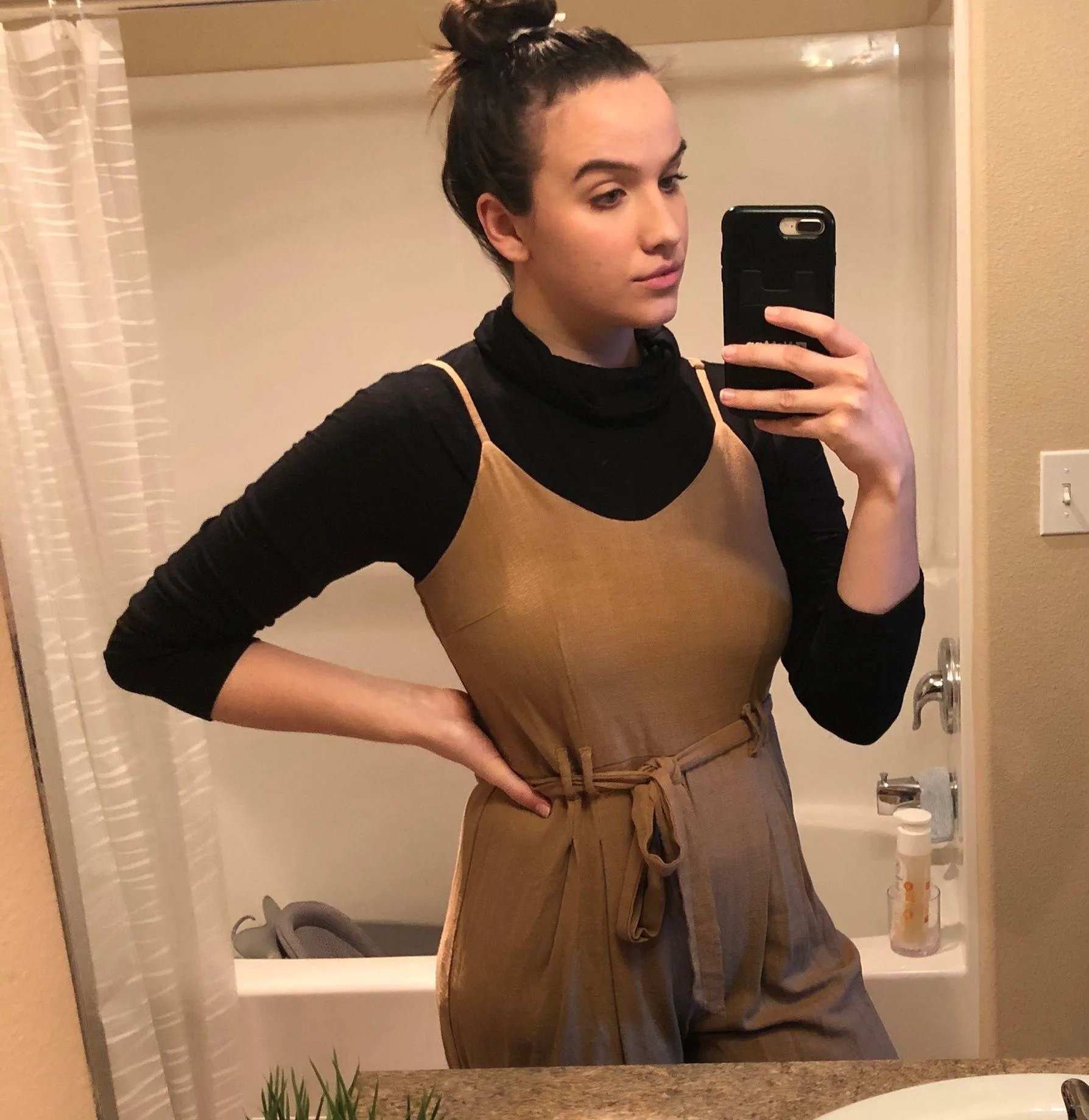 Brown jumpsuit with adjustable straps, pockets and pleats. Worn twice and in like new condition.