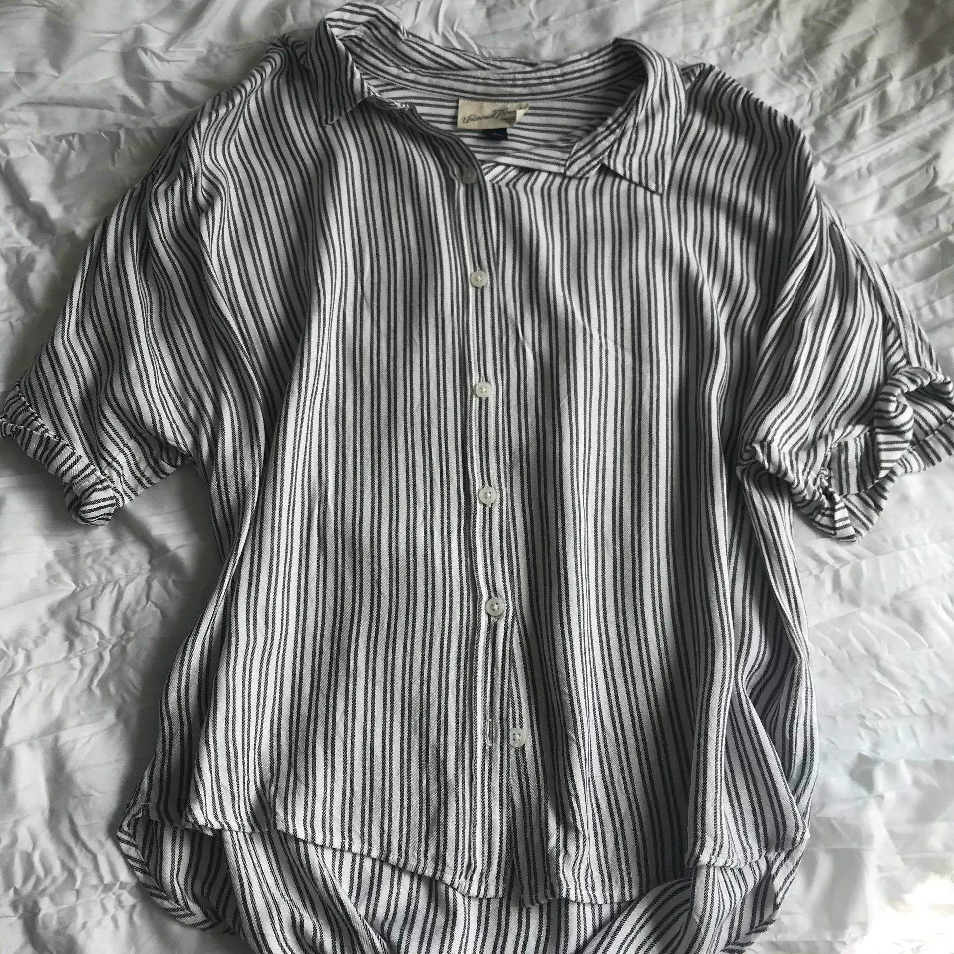 Brand: -Universal Thread (Target) Style: -black and white vertical stripes -white button down front... Show more