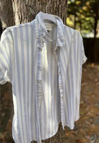 Airy Breathable Collar Tee • cotton • blue striped motif • smoke free home Size & Fit ( all ap... Show more