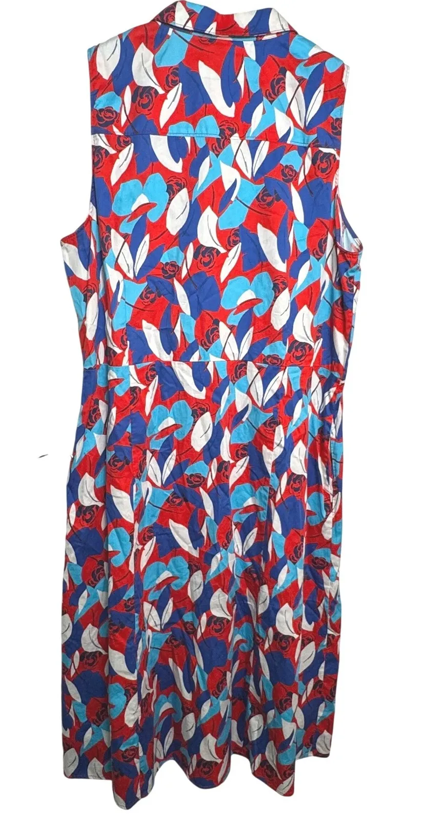 Style: Shirt Dress, Sundress Dress Length: Midi Department: Women Sleeve Length: Sleeveless Pattern: Floral Occasion: Casual Fabric Type: Rayon Theme: Tropical Neckline: Collared Season: Summer, Spring Closure: Button Accents: Button Features: Collared, Belted Country of Origin: China UNTUCKit Women's Faye Floral Stretch Cotton Sleeveless Midi Shirt Dress Size 18 Keywords: shirt dress, button front, tie waist, collar, sleeveless, midi dress, summer dress, vacation, resort, garden party, preppy, classic, botanical