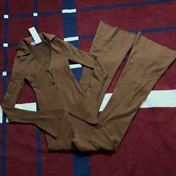 UO Harriet Ribbed Knit Jumpsuit Urban Outfitters Brown Women’s S small NWT Brown - $86 - From Kristal